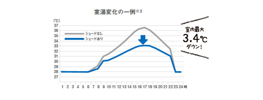 夏場、室内に入ってくる熱の約70%は窓から入ってきます。太陽からの熱を窓の外からカットして、室内温度を心地よくキープできます。