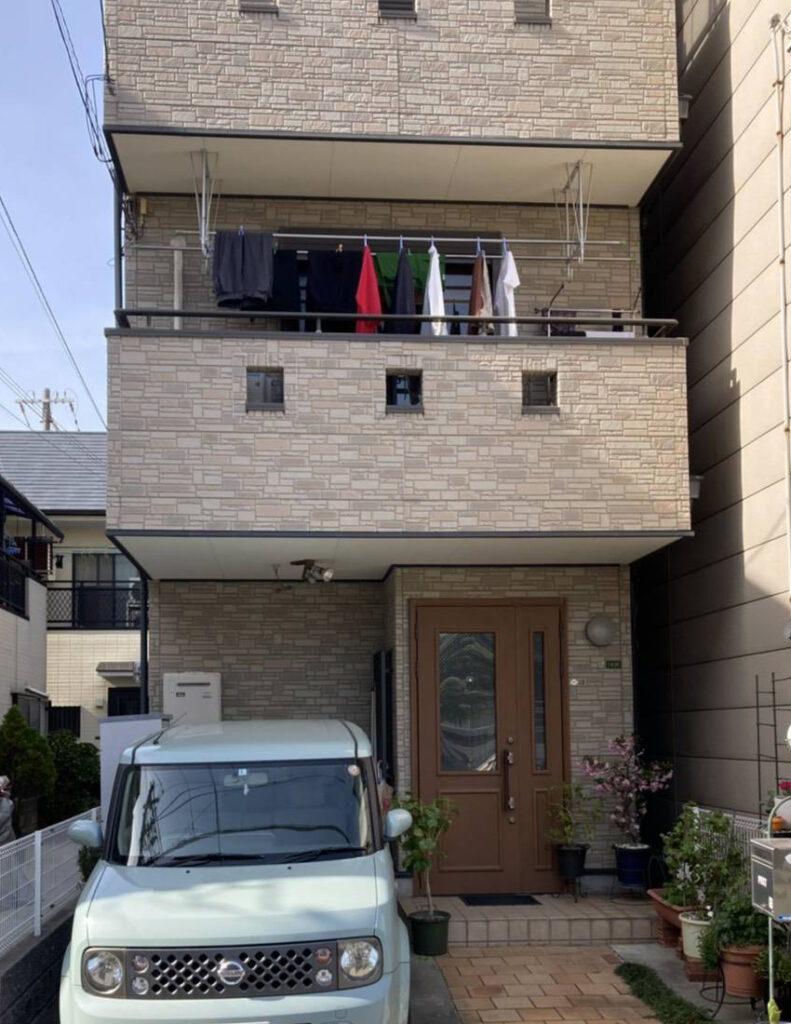 ベランダの前の壁をなくし、新たにアルミのバルコニーを接続。木目調の格子で外観の印象が大きく変化しました。