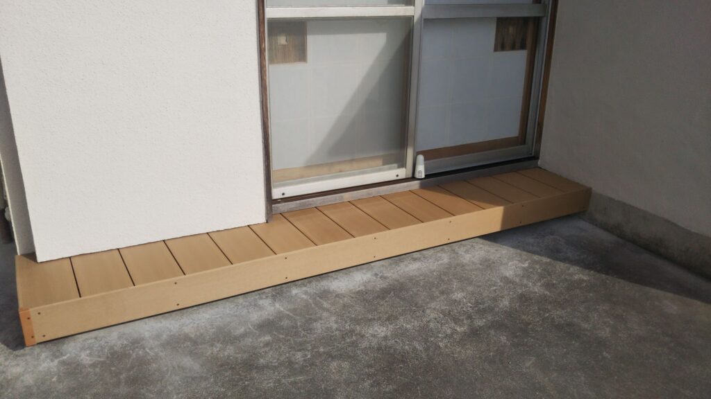 商品はウッドデッキですが、昔からの名称で言いますと、ぬれ縁を作りました。