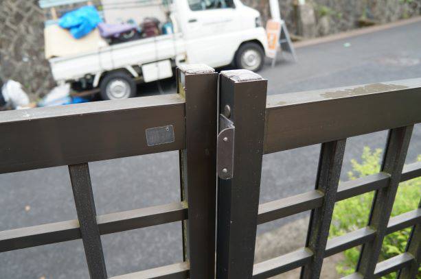 玄関の門扉の建て付けを直して、開閉しやすくしました。