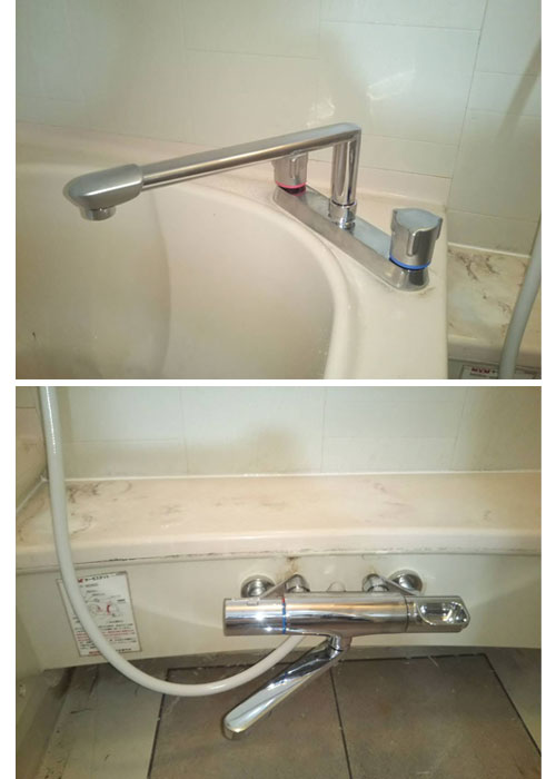 洗面化粧台とお風呂の水栓をアップデートしました。長年使用すると汚れがこびりついて取れなくなります。
