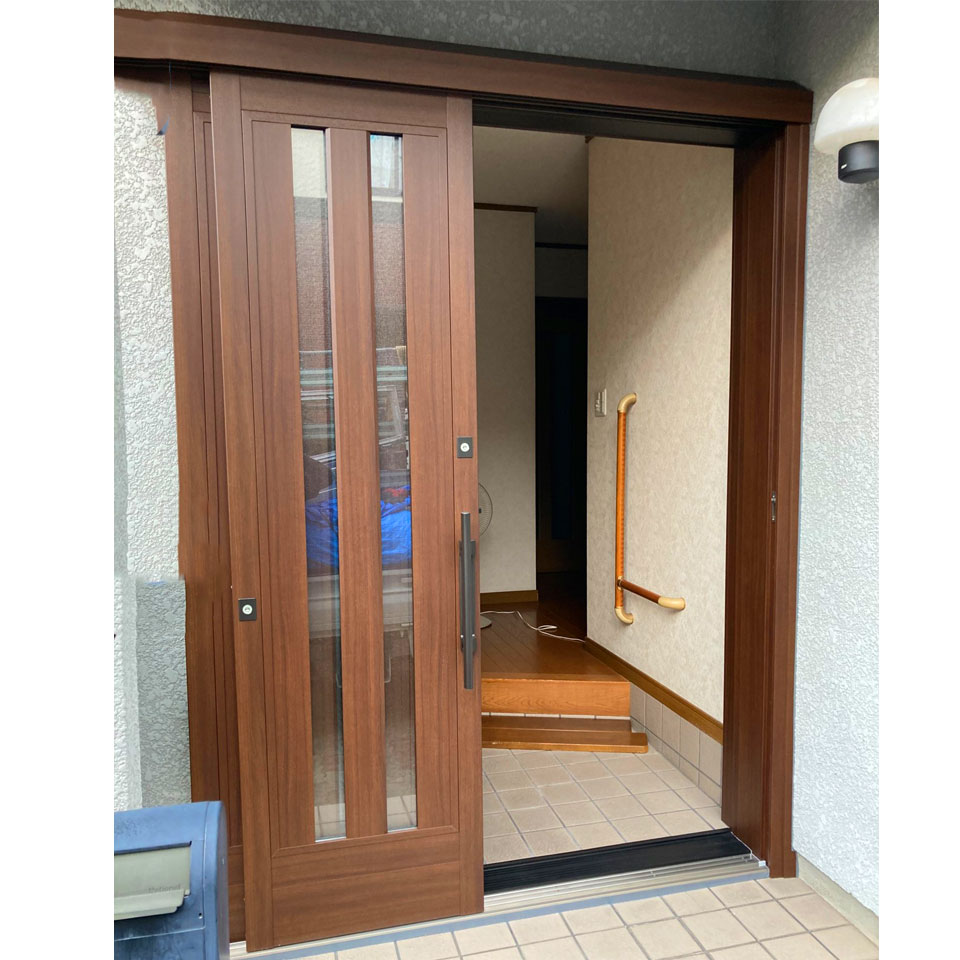 引戸にすることによって、開いた時の開口部分が広くなりました。