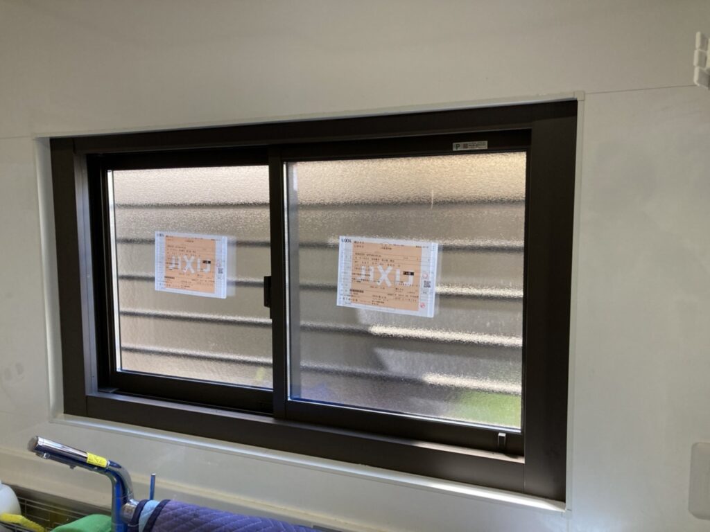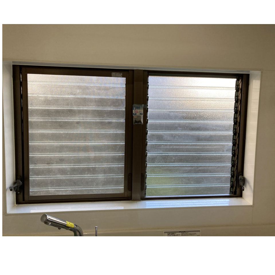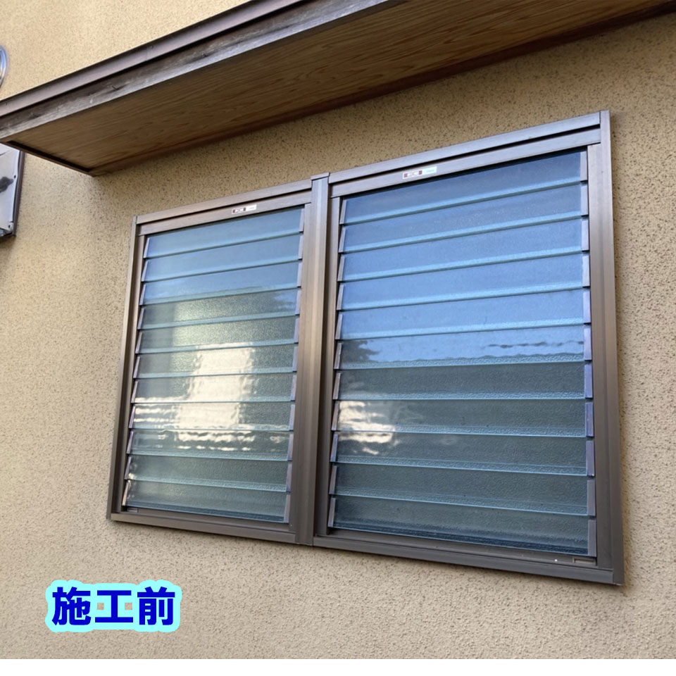 ガラスルーバー窓から面格子付き引き違い窓に変更しました。