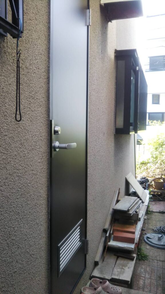 古くなった勝手口ドアを交換しました。腐食・変色したりしてたので、見た目一新です!鍵も防犯面を考慮したもので変わり、安心安全快適です!