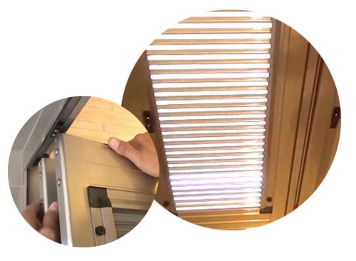 中折(折りたたみ式)の玄関網戸とは、網戸を開閉するときに2つ折りになるタイプとなります。ルーバータイプの網戸に多い形状です。
