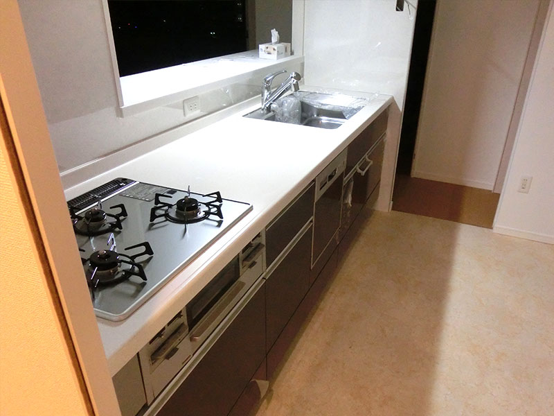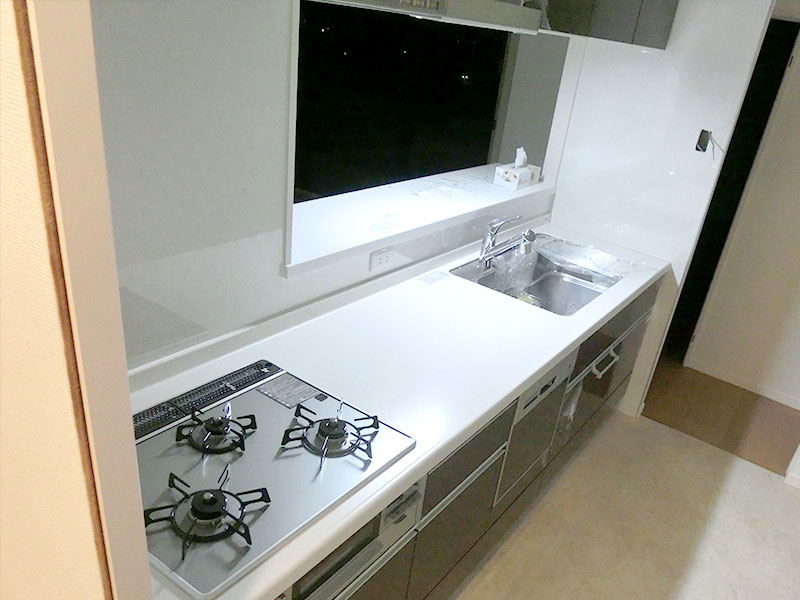 システムキッチンまわりの入れ替え時に壁部分にも工事が必要な場合がありますので周辺の家具なども片付けた上で対応しております。