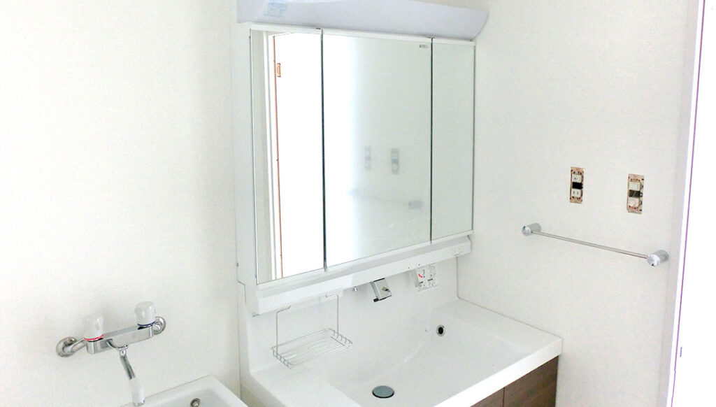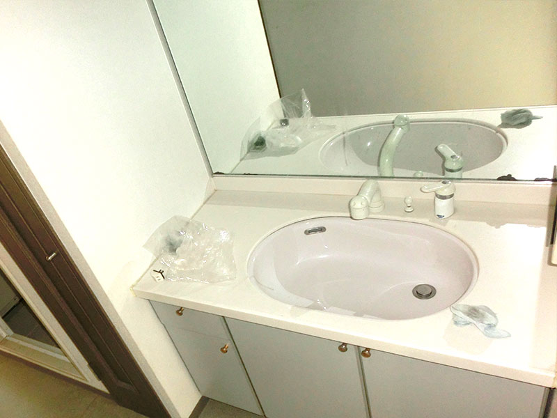 既存の洗面化粧台の解体から新規設置まで一括して行わせて頂きました。